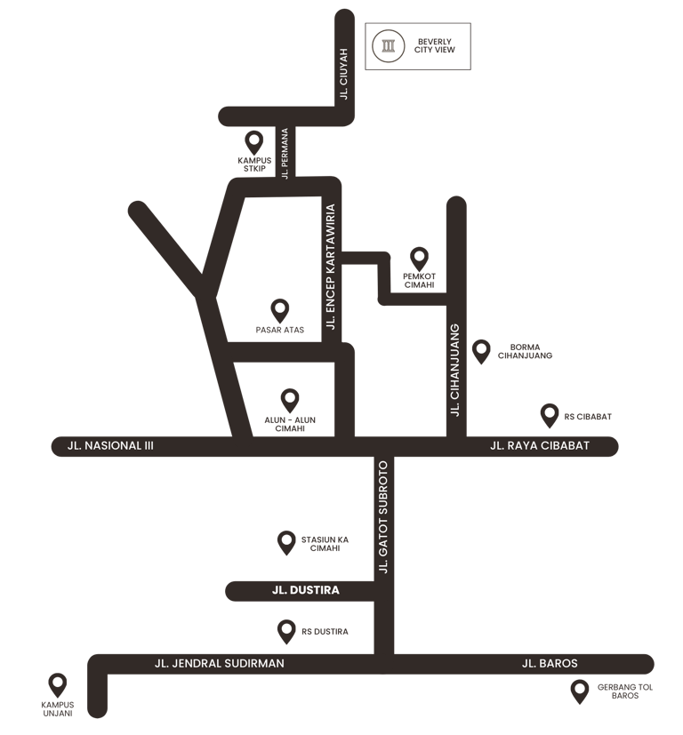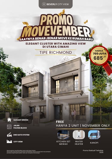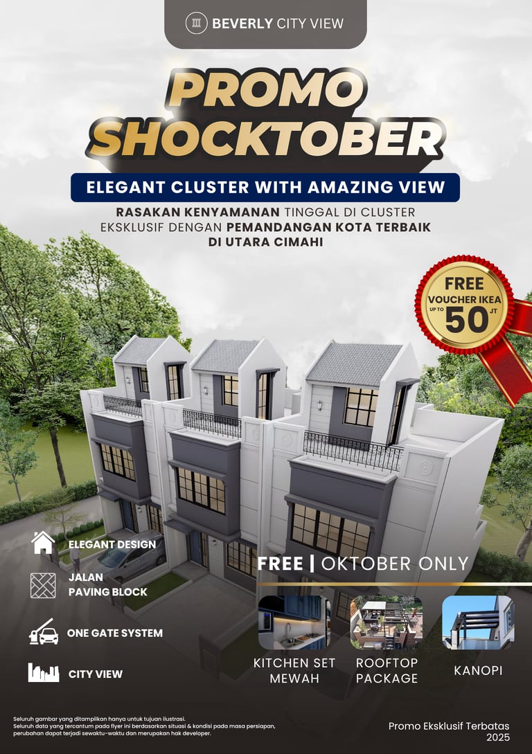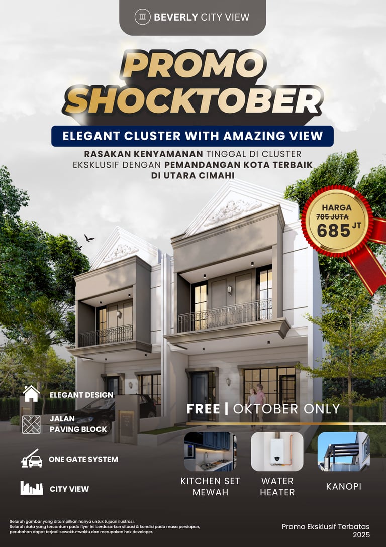 Beverly City View menghadirkan hunian bergaya arsitektur klasik yang elegan dengan pemandangan menakjubkan dan harga terjangkau. Berlokasi di Utara Cimahi, cluster ini menawarkan kenyamanan dan ketenangan jauh dari hiruk pikuk kota. Terinspirasi dari kemegahan Beverly Hills California, hunian ini bukan hanya tempat tinggal idaman, tetapi juga kebangaan bagi penghuninya.