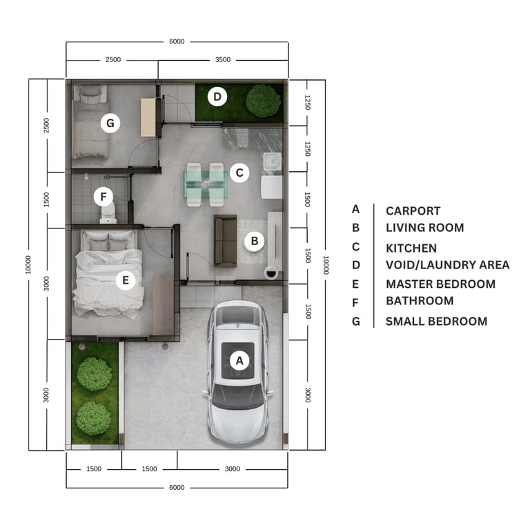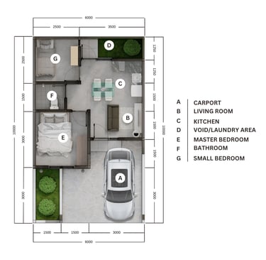 Rumah ini sangat cocok untuk pasangan muda, atau yang memiliki 1 anak. Desainnya sangat kompek, memaksimalkan pemanfaatan ruangan, dengan tetap menyediakan taman untuk santai atau laundry area