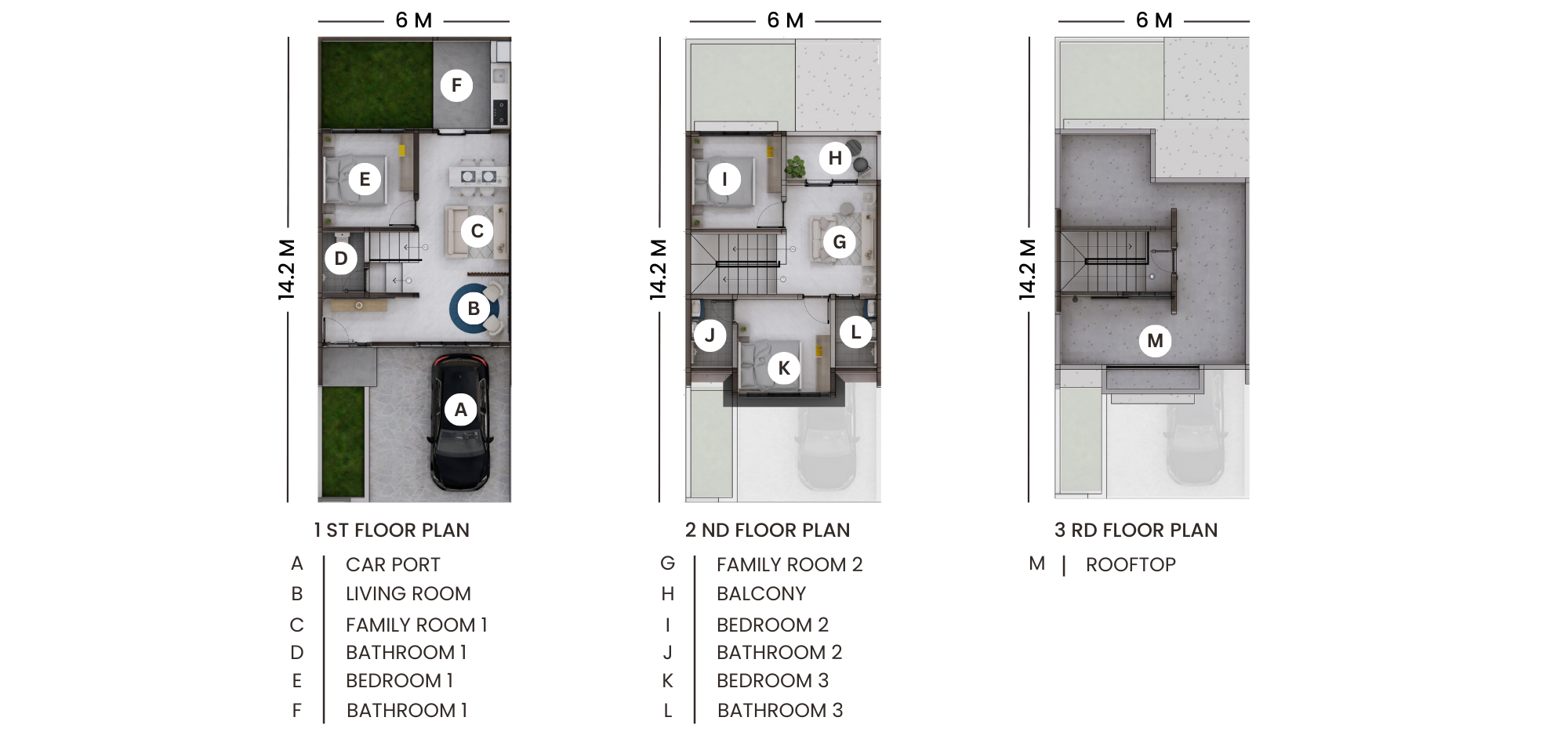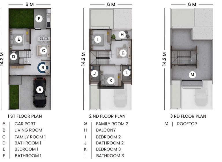 Rumah ini sangat cocok bagi mereka yang memiliki 2 atau 3 anak. Desainnya elegan, rooftop dengan tetap menyediakan taman untuk santai atau laundry area serta sudah free kitchen set mewah dan kompor tanam.